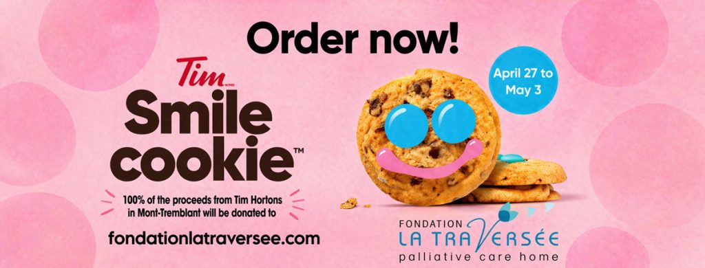 For the fifth year in a row the generous owners of Tim Hortons restaurants in Mont-Tremblant will be supporting La Traversée Foundation, Palliative Care Home during the Smile Cookie campaign.